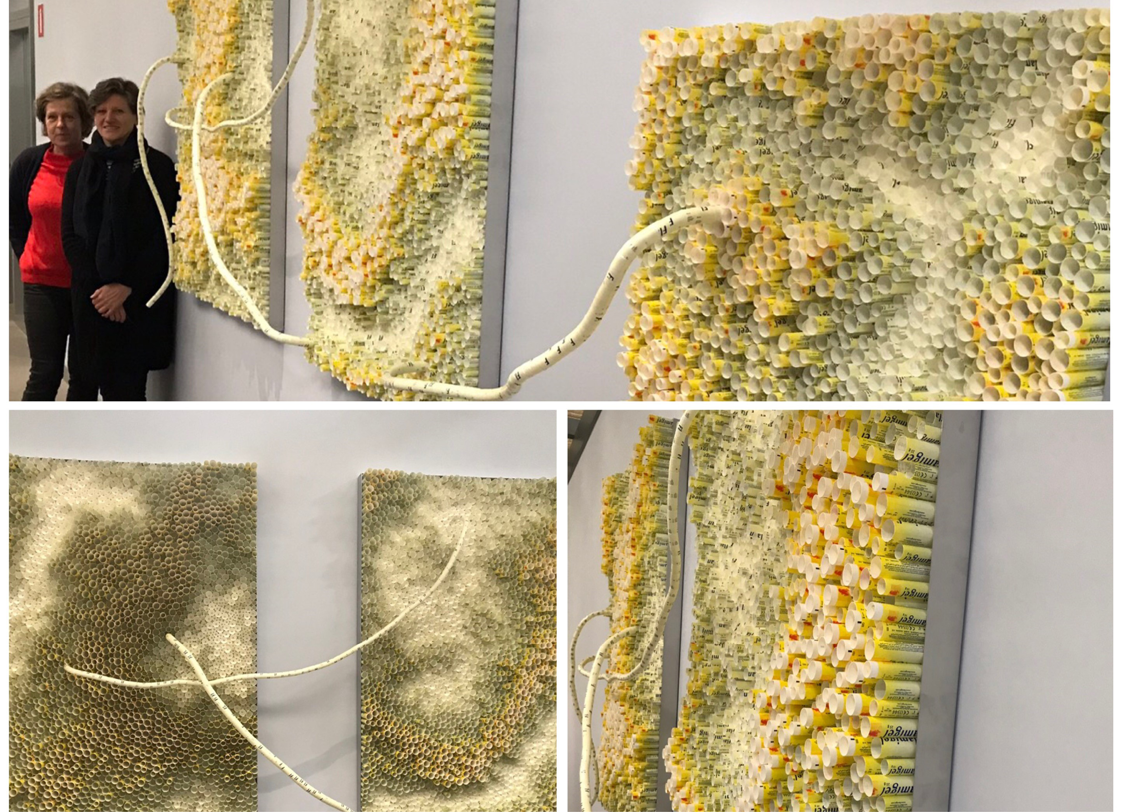 Kris Ceurvels and Zjan Van Miert, two artists from Belgium found not only a creative but also meaningful solution of recycling our old product tubes: They created three interlinked frames covered with 6364 empty Flamigel tubes. “We got inspired by an old telephone exchange”, the two women say. The artists cut the tubes in different lengths which creates a very colourful geographic relief. To process and visualise their art project with old Flamigel tubes is resourceful and innovative. Today, the art piece decorates the entrance hall in our Belgian affiliate and reminds us of the importance of staying connected with the people in our lives, the environment and society.